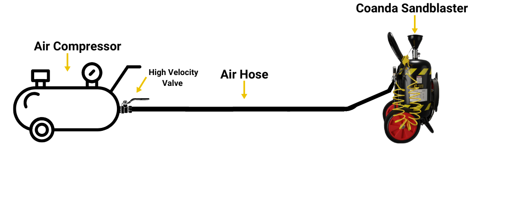 - Increased Capacity: Combine the tank sizes of your air compressors. For example, Two 100-liter compressors plus your Coanda Sandblaster's 55-liter capacity equals a total of 255 liters.