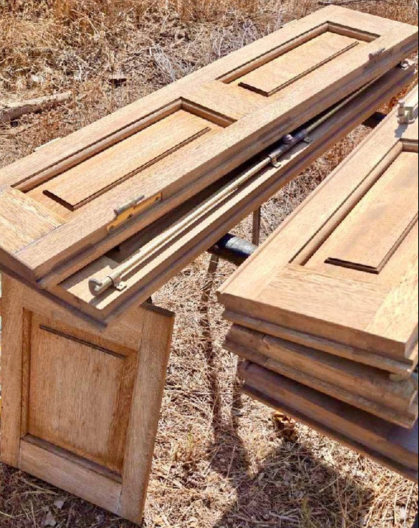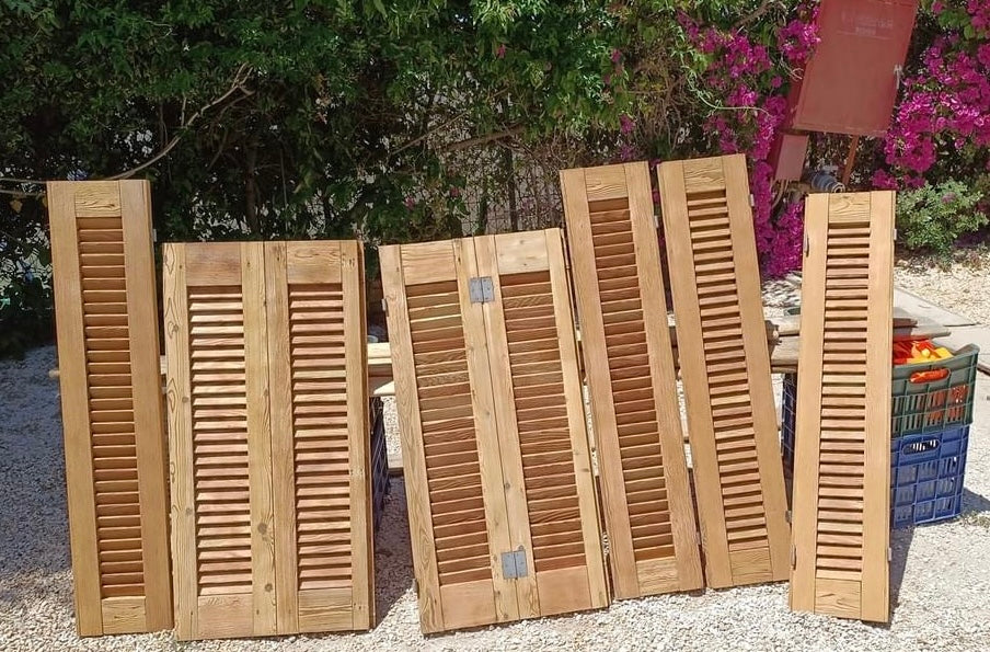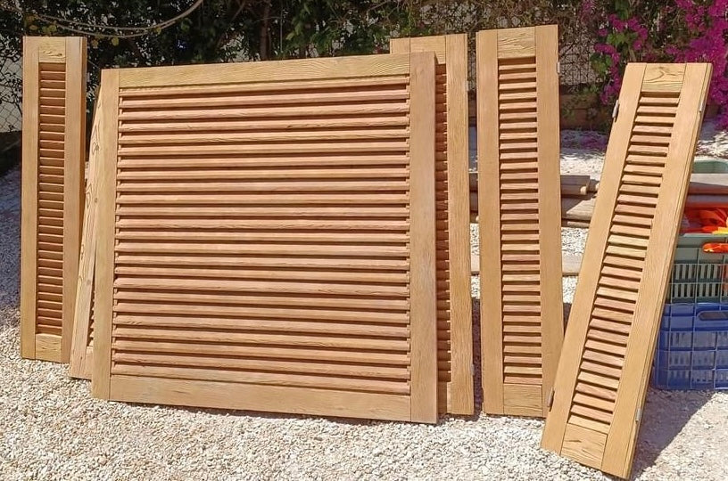Once the shutters were fully sandblasted, our client applied varnish to protect the wood and enhance its natural grain. This finishing step gave the shutters a warm, rich color and long-lasting durability.