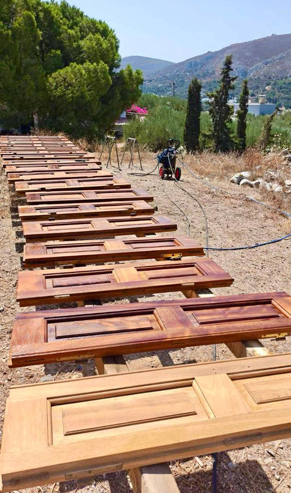 The Coanda Sandblaster stripped away the old layers of paint and imperfections, revealing clean, natural wood ready for refinishing.